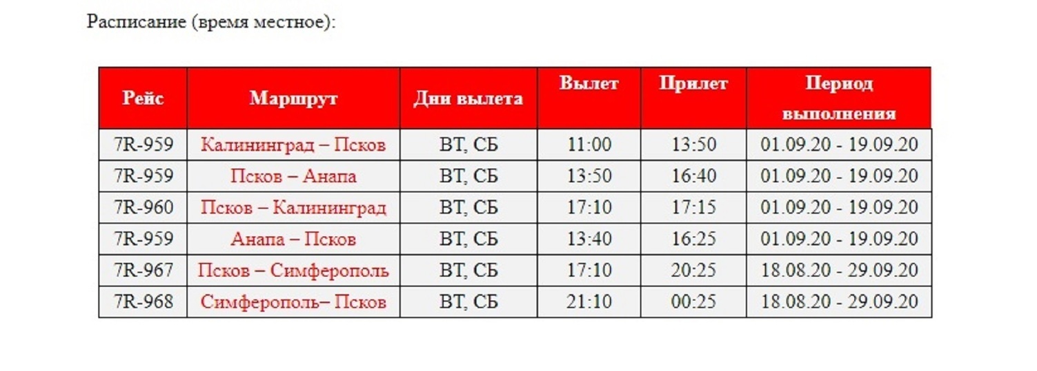 Первый авиарейс по маршруту Псков - Симферополь состоится сегодня, 18 августа.