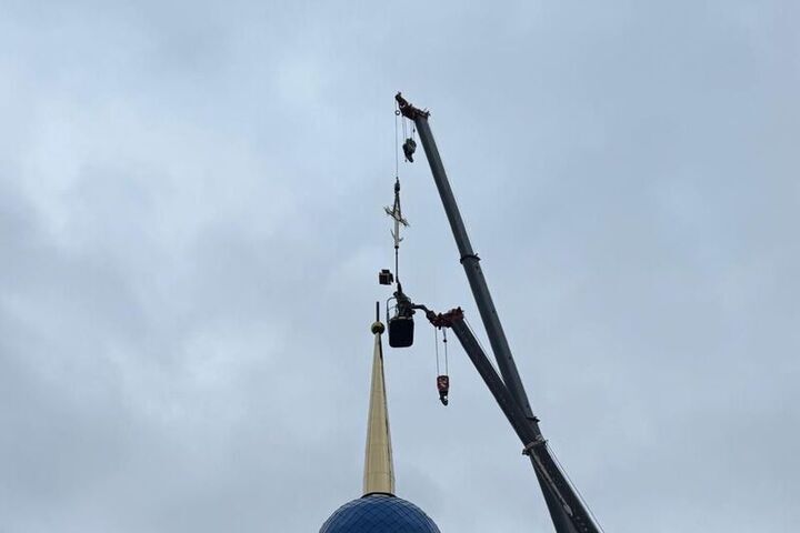 В Великих Луках на строящийся храм в честь Успения Пресвятой Богородицы торжественно установлен православный крест, сообщили "МК в Пскове" в администрации Великих Лук.