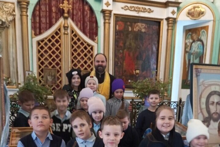 Священнослужитель рассказал детям о святых Русской православной церкви — преподобном Сергии Радонежском, великомученике Георгии Победоносце и равноапостольной княгине Ольге. Также обсудили с учениками понятия добра, зла и совести, поговорили о героях современности и качествах, необходимых для становления личности.