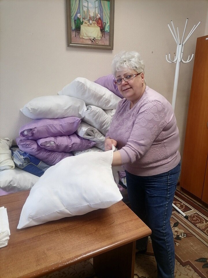 Посетители Центра из Себежа шьют подушки для раненых бойцов и поставляют их в госпиталь. Синтепоном и обрезками ткани для набивания подушек активистов серебряного возраста обеспечивает местная швейная фабрика. Бязь, ситец, хлопок для наволочек несут неравнодушные горожане.