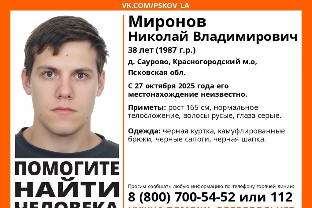 38-летнего жителя красногородской деревни Саурово Николая Миронова ищут в Псковской области. Место его нахождения неизвестно с 27 октября. Об этом «МК в Пскове» сообщили в реготделении поискового отряда «ЛизаАлерт».