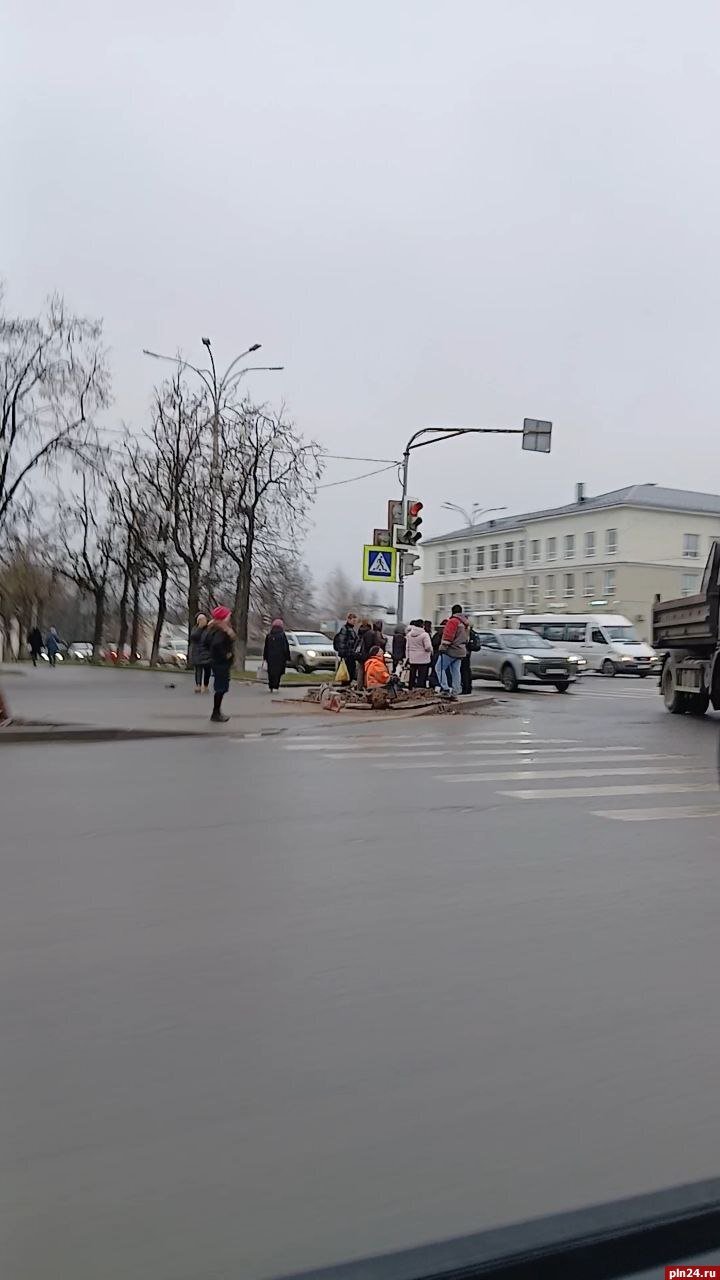 В центре Пскова ведутся ремонтные работы по установке пешеходного светофора. О том, что идет работа по восстановлению упавшей стойки, со ссылкой на очевидцев сообщает Псковская Лента Новостей.