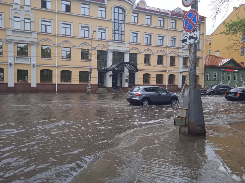 В Пскове уже несколько раз за этот месяц фиксируют превышение норм выпавших осадков. Городские службы чистят ливневую канализацию, автомобилисты выбирают участки объезда.