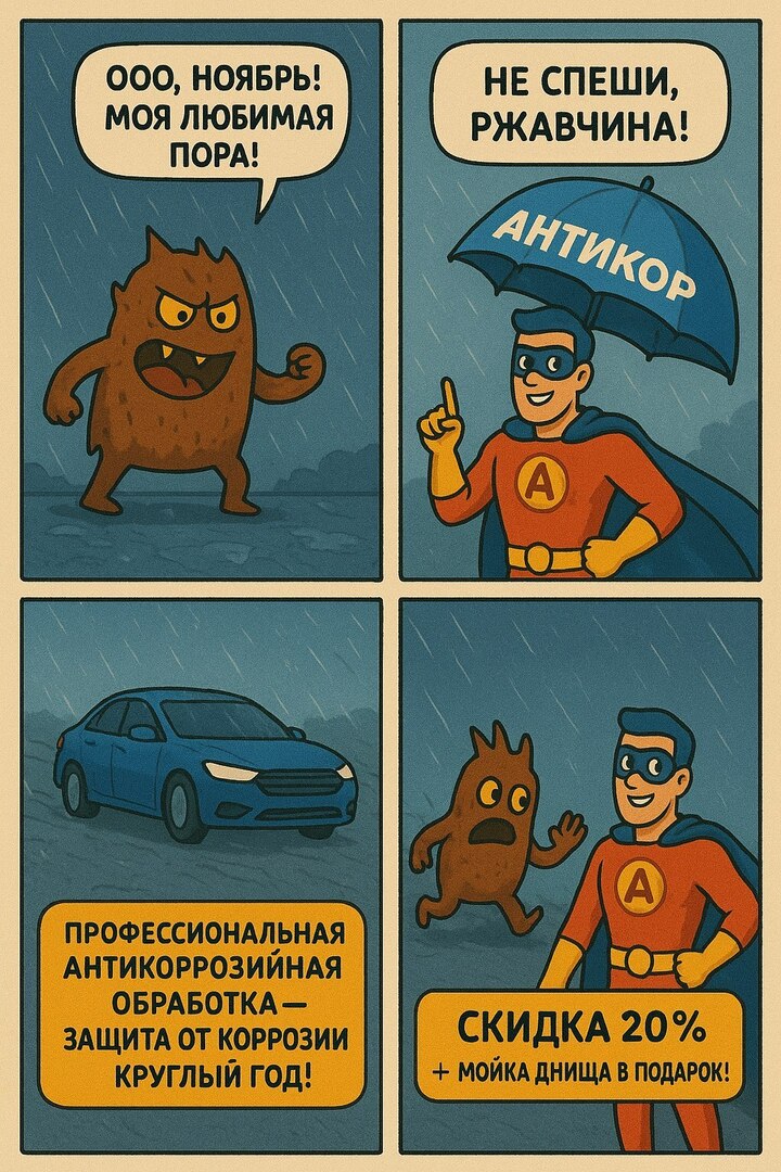 Ноябрь — время действовать! Дожди, грязь, реагенты — всё, что любит ржавчина -уже на дорогах! А значит, настало время позаботиться о защите своего автомобиля.