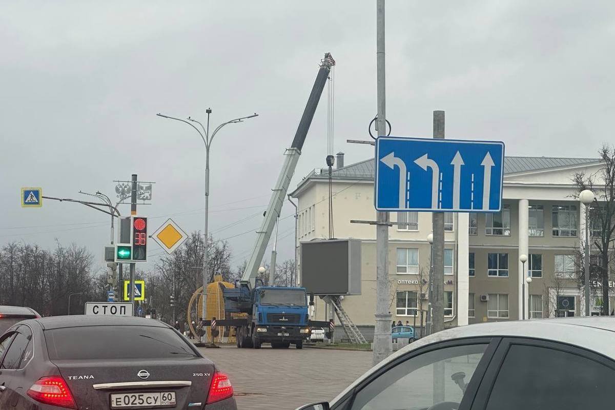 В Центре Пскова собственник установленного экрана, на котором транслировалась реклама, выполняет демонтаж оборудования. Как сообщили "МК в Пскове" очевидцы, с помощью автовышки идет разборка конструкции.