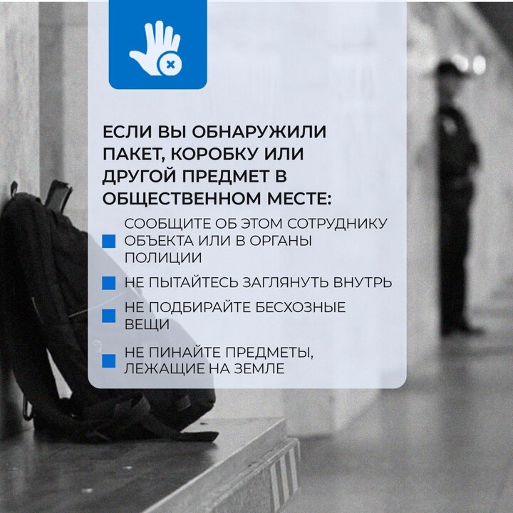 Если вы заметили бесхозный предмет, ни в коем случае не приближайтесь к нему и не трогайте его. Это может быть взрывное устройство или другой опасный объект.