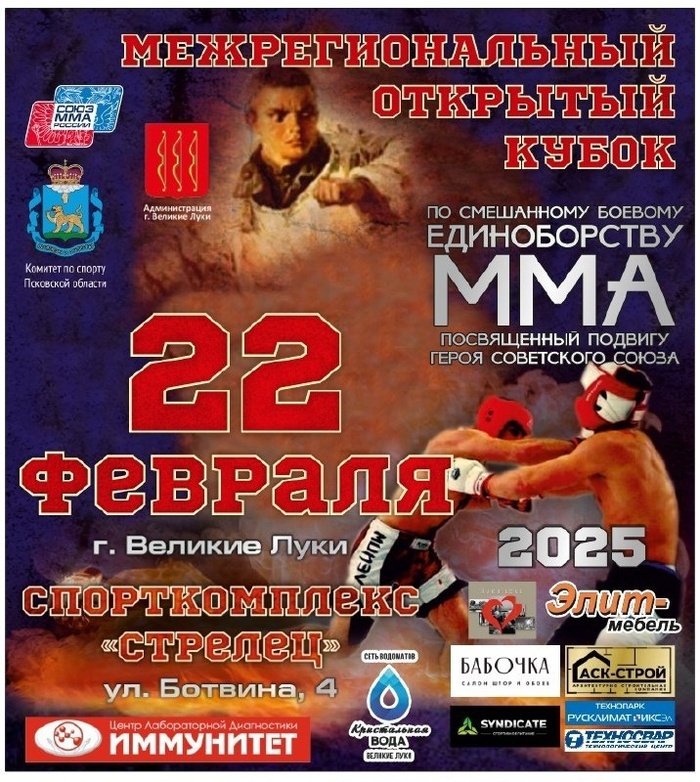 22 февраля в спортивно-оздоровительном комплексе «Стрелец» состоится Межрегиональный открытый кубок по смешанному боевому единоборству (ММА), посвященный подвигу Героя Советского Союза Александра Матросова. Об этом "МК в Пскове" сообщили в пресс-службе комитета по спорту Псковской области.