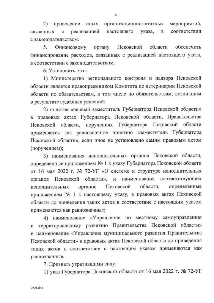 С 1 июня 2022 года Псковская область официально стала Правительством, что стало частью реформы для соответствия федеральным стандартам. Этот шаг обозначает вторую фазу реализации Федерального закона 414-ФЗ, в рамках которой региональные комитеты будут преобразованы в министерства. Об этом в своем телеграм-канале рассказал Михаил Ведерников.