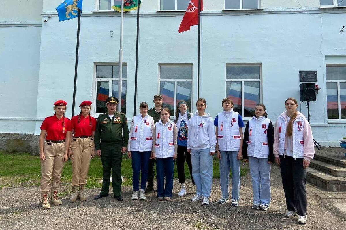 В школе №5 Невеля ветеран боевых действий Сергей Александрович Евтюгов поднял государственный флаг и провел урок мужества со школьниками.