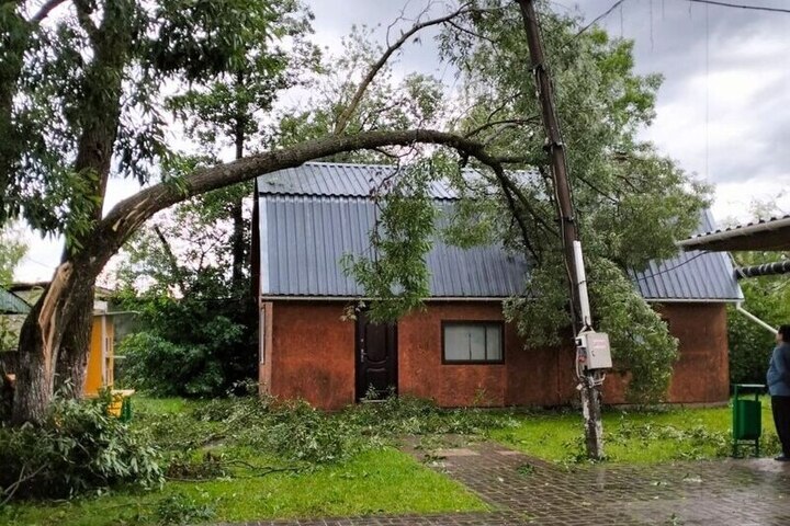 Много поваленных деревьев, повреждены заборы, кровли домов и сараев, оборваны провода. Работают бригады электриков и коммунальщиков.