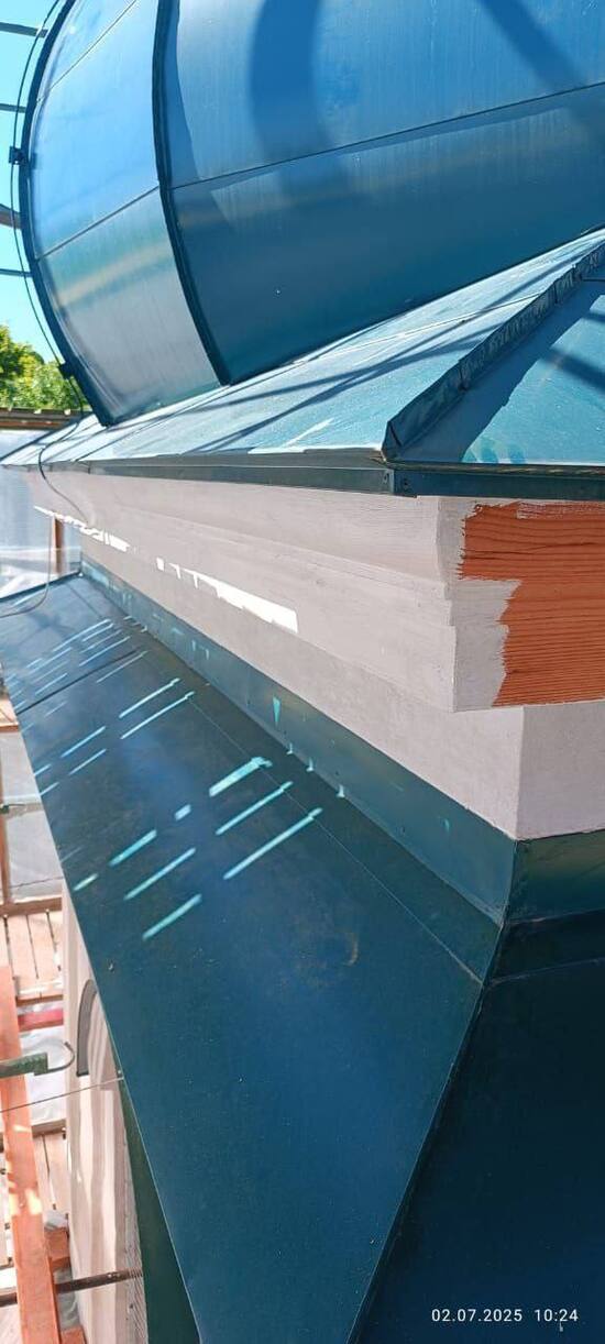 Кроме того, специалисты закончили изготовление и установку дымных колпаков на печные трубы. Трубы будут использованы в качестве вентиляционных. На колокольне установили металлическую сетку для защиты от птиц в открытой части. Над четвериком заменили перекрытия.