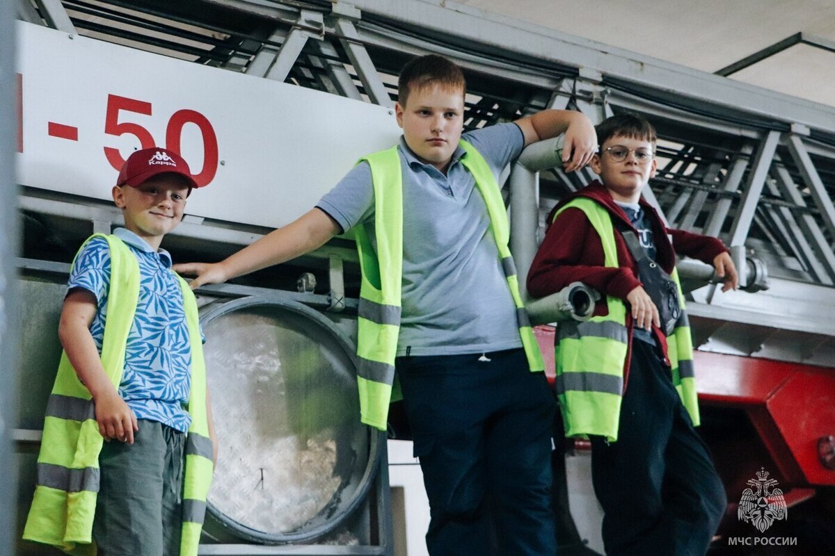 Также во время экскурсии ребята смогли познакомиться со спецтехникой, рассмотреть пожарные машины вблизи и почувствовать себя настоящими членами команды.