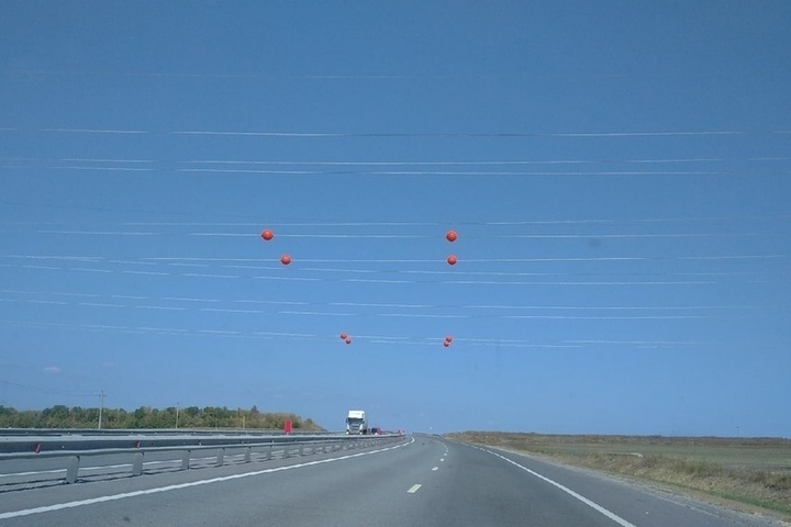 Яркие шары на проводах над дорогами – это маркеры, обеспечивающие видимость воздушных линий для пилотов вертолетов и других воздушных судов.