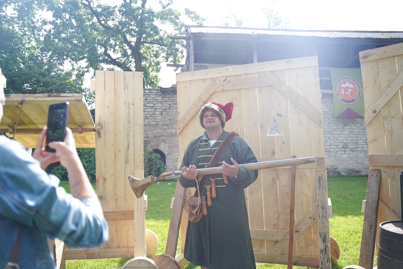 На территории праздника (Покровский угол на улице Свердлова, 3) будет работь фотозона, где любой желающий сможет сфотографироваться в снаряжении защитников Пскова XVI века на фоне декораций из передвижных полевых укреплений.