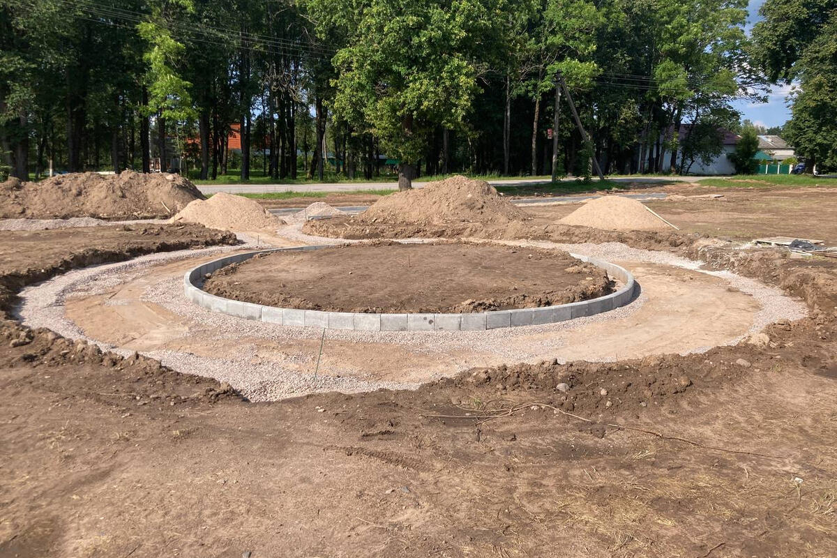 По планам рабочие установят покрытия пешеходных дорожек из гранитного отсева, установят бортовых камней пешеходных дорожек и построят детскую площадку.