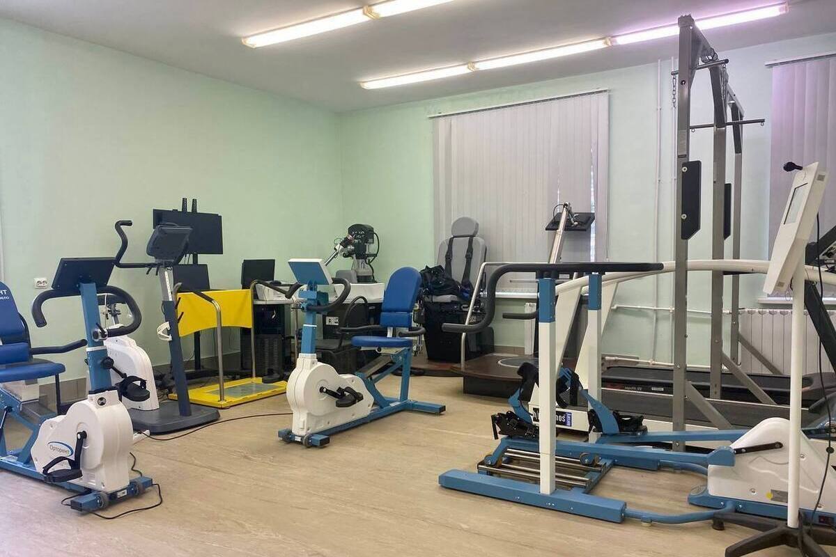 В числе оборудования — три велоэргометра для восстановления мышечной активности ног, восемь тренажёров для разработки различных частей тела, система электростимуляции, позволяющая пациентам быстрее восстановить навыки ходьбы, и комплекс для виртуальной реабилитации.
