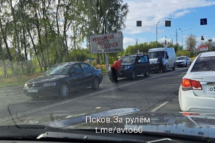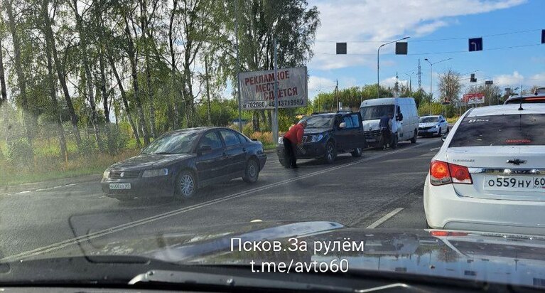 Псковичи продолжают пополнять статистику пятничных ДТП на выезде из города. О тройном столкновении машин сообщает очевидец в группе "Псков за рулем".