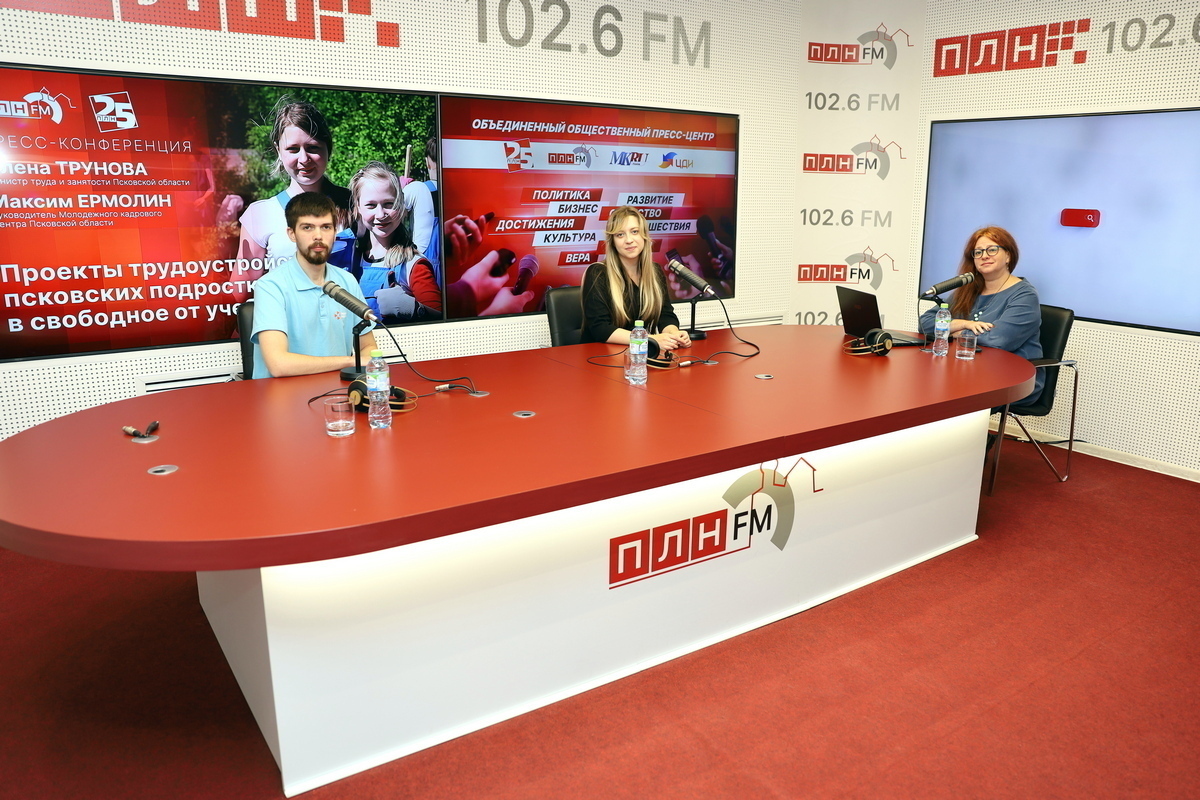 Сегодня, 26 сентября, в объединенном пресс-центре Псковской Ленты Новостей и радиостанции «ПЛН FM» прошла пресс-конференция «МК в Пскове» о трудоустройстве несовершеннолетних. В обсуждении приняли участие министр труда и занятости региона Алена Трунова и руководитель Молодежного кадрового центра Максим Ермолин.