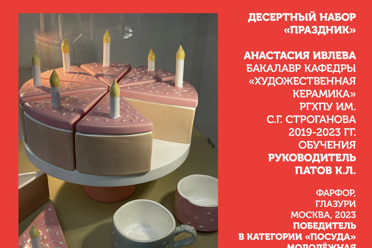 Идеей проекта «Праздник» является стремление создать посуду, которая объединит за одним столом и взрослых, и самых маленьких. Главные ценители сладостей — это дети, в связи с чем художник соединила элегантность десертного набора, а также тёплый и дружелюбный дизайн детского сервиза.