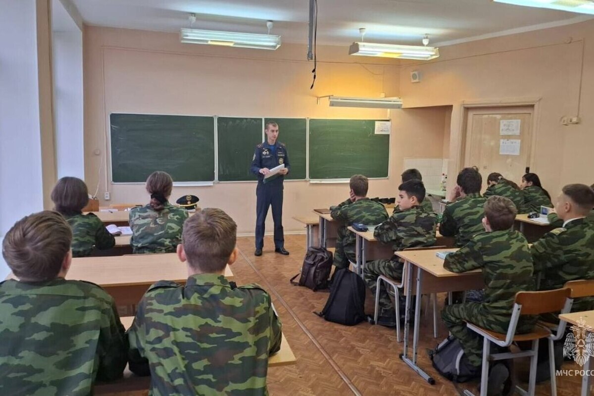 Псковские спасатели проводят обучение кадетов основам пожарной безопасности