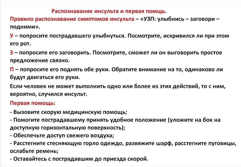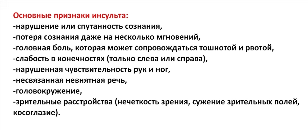 Инсульт является очень опасным для жизни состоянием. Это острое нарушение кровоснабжения головного мозга, которое характеризуется внезапным (в течение нескольких часов или даже минут) появлением очаговой и/или общемозговой неврологической симптоматики, которая сохраняется более суток или приводит к смерти больного в более короткий промежуток времени. По экспертным оценкам ВОЗ инсульт занимает второе место среди причин смертности, поэтому особенно важно знать его первые симптомы, чтобы успеть помочь близкому человеку.
