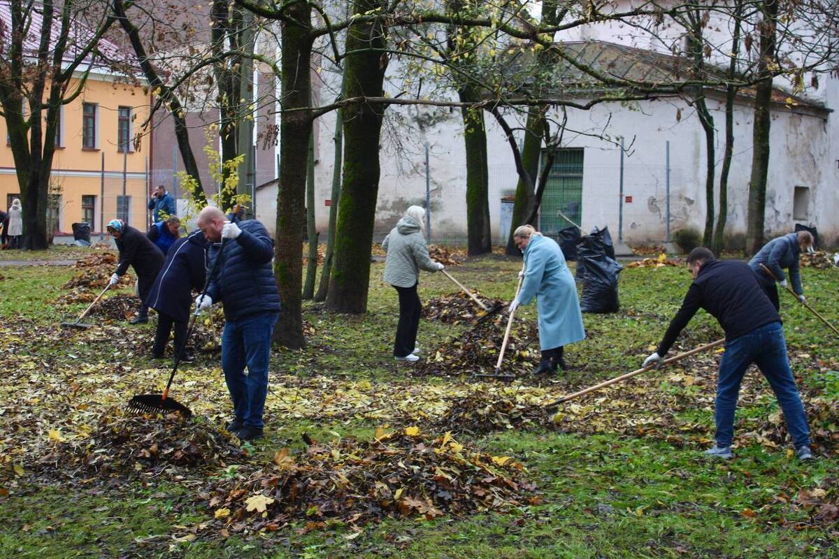 Участники субботника очистили от опавшей листвы и веток территорию, прилегающую к библиотеке «Каверинка», а также участок за храмом Нового Вознесения.