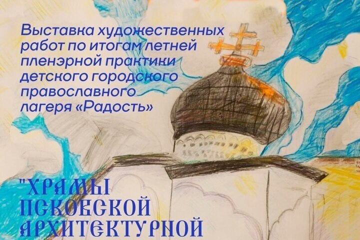 Посетители смогут увидеть работы победителей фотоконкурса «Храмы Псковской архитектурной школы — люди и храмы» и художественные работы, созданные детьми в рамках летней пленэрной практики православного лагеря «Радость».