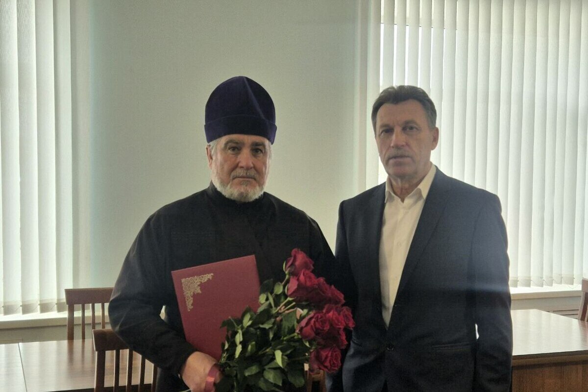 От имени администрации Новосокольнического района Виталий Соловьев поздравил отца Иоанна с праздников, а также вручил ему почетную грамоту Новосокольнического района.