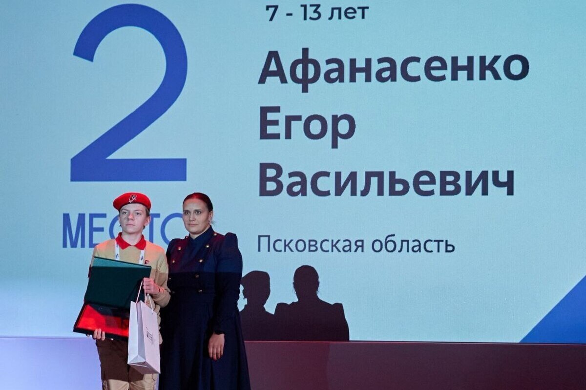 Псковскую область на конкурсе достойно представил Егор Афанасенко, ученик 7 класса из Великих Лук, вместе со своей мамой Ольгой Александровной. Школьник завоевал II место в номинации «Авторская песня» в возрастной категории от 7 до 13 лет, продемонстрировав свой талант и патриотизм.