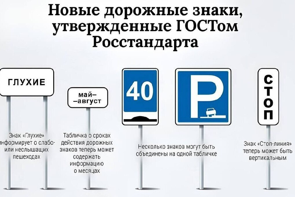 Среди нововведений – вертикальный знак «Стоп-линия», табличка «Глухие пешеходы» для акцентирования внимания на людях с нарушениями слуха, а также знак «Рекомендуемая скорость при проезде искусственной неровности».