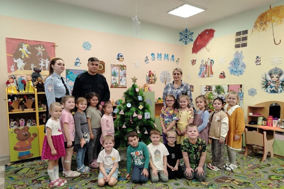 Дорожные знаки вместо игрушек: дедовичские дошкольники и ГИБДД украсили ёлку безопасности