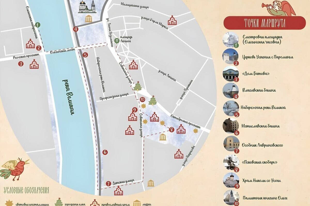 Этот сказочный маршрут охватывает 13 живописных локаций в центре города, каждая из которых хранит свою уникальную историю и дух края. Прогулка по «Псковским легендам» обещает стать идеальным способом провести последние декабрьские дни, проникнуться историей и почувствовать настоящую рождественскую атмосферу Пскова.