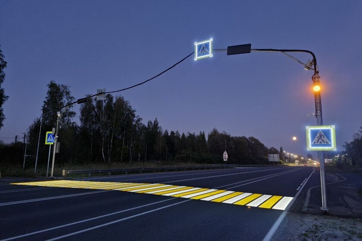 Инновационный пешеходный переход повышает безопасность на трассе Псков – Гдов