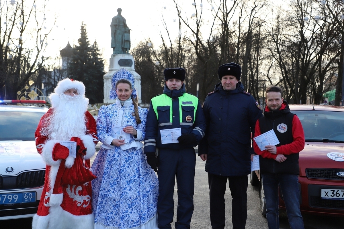 В преддверии новогодних праздников главная ёлка города на Октябрьской площади стала местом необычной встречи. Водителей, проезжавших мимо, приветствовали не только праздничное настроение, но и сказочные персонажи: Полицейский Дед Мороз и его внучка Снегурочка. В сопровождении инспекторов Госавтоинспекции УМВД России по Псковской области и представителей Псковского регионального отделения Всероссийского общества автомобилистов, они поздравили жителей и гостей областного центра с наступающим Новым годом.