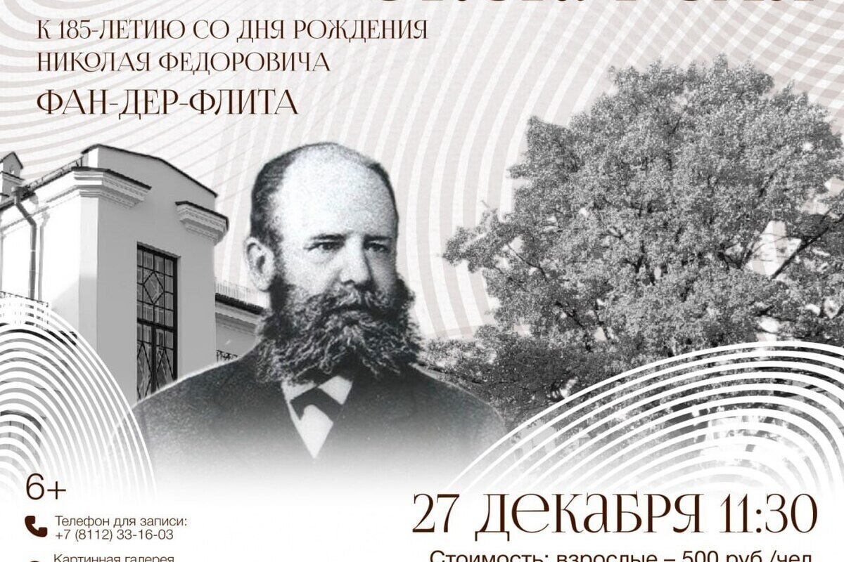 Мероприятие приурочено к юбилею Николая Федоровича Фан-дер-Флита, известного благотворителя, мецената и государственного деятеля. Посетители узнают о жизни и деятельности Николая Фан-дер-Флита, его вкладе в развитие художественно-промышленной школы, а также увидят подаренную им картину И.К. Айвазовского «Лунная ночь в Крыму» и уникальную керамическую вазу. В завершение экскурсии каждый участник получит памятную открытку.