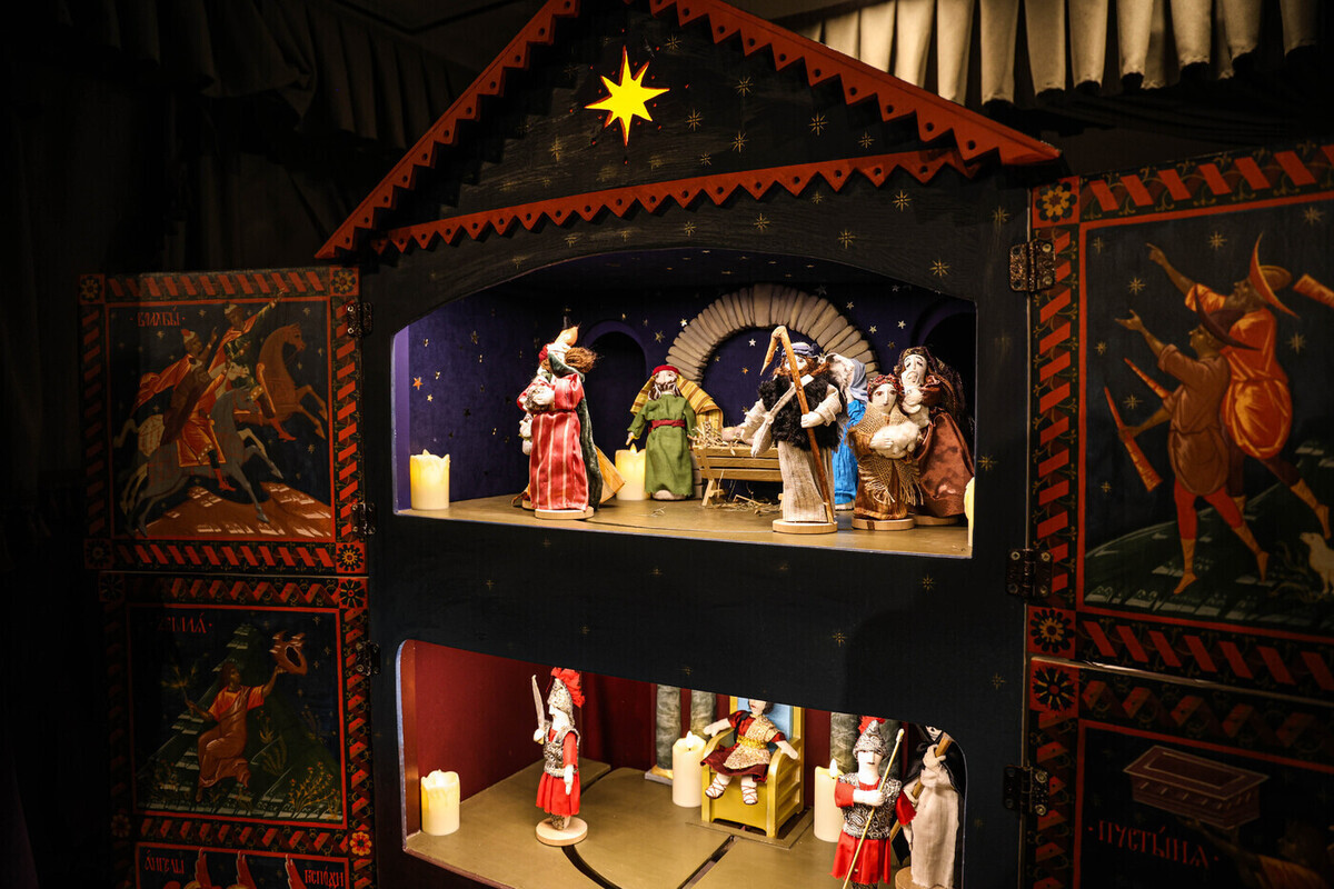 Зрителей ждет погружение в атмосферу старинного кукольного представления, рассказывающего историю Рождества Христова. Традиционный вертеп, с его ярусами, символизирующими небесную и земную сферы, подсвеченный свечами, и праздничные песнопения создадут настоящее волшебство.