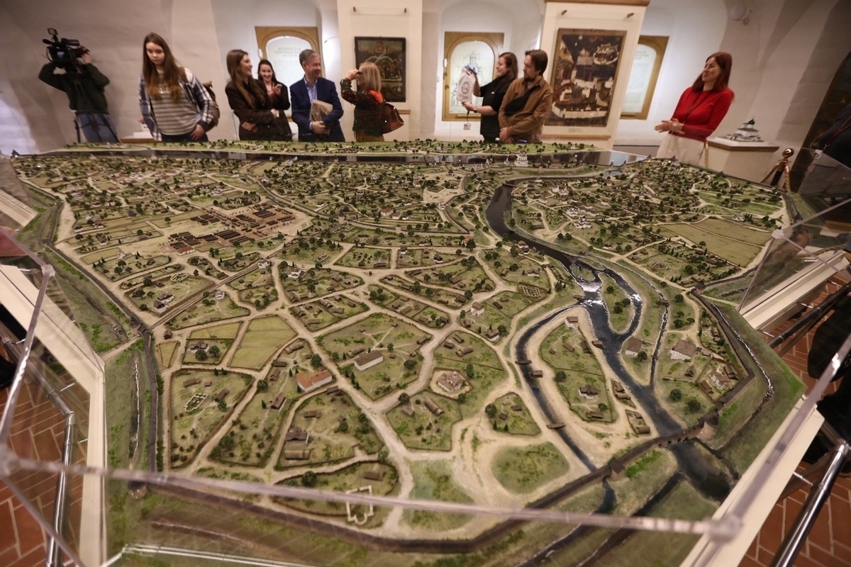 В Псковском музее-заповеднике состоялась презентация масштабного макета Пскова XVII века для представителей региональных СМИ. Эксклюзивный показ провела генеральный директор музея Светлана Мельникова. В Поганкиных палатах воссоздан обобщённый облик города конца XVII века в виде макета размером 6 на 4 метра, в котором объединены многолетние научные исследования историков, археологов и специалистов смежных дисциплин, передает корреспондент «МК в Пскове».