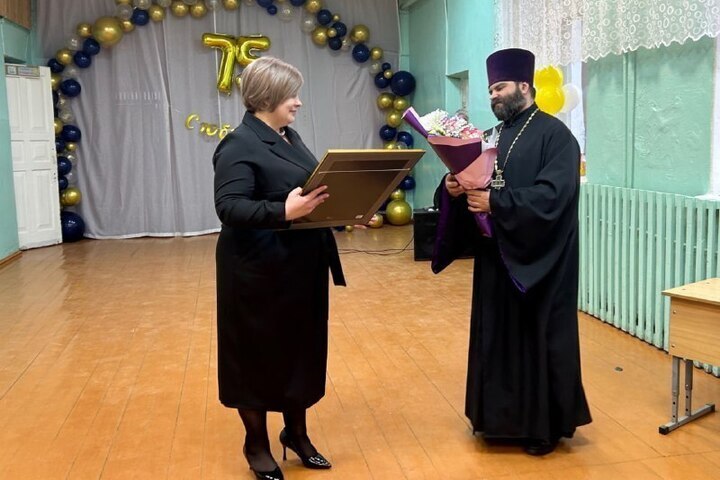 От имени духовенства отец Роман поздравил коллектив школы со значимой датой и пожелал помощи в воспитании подрастающего поколения.