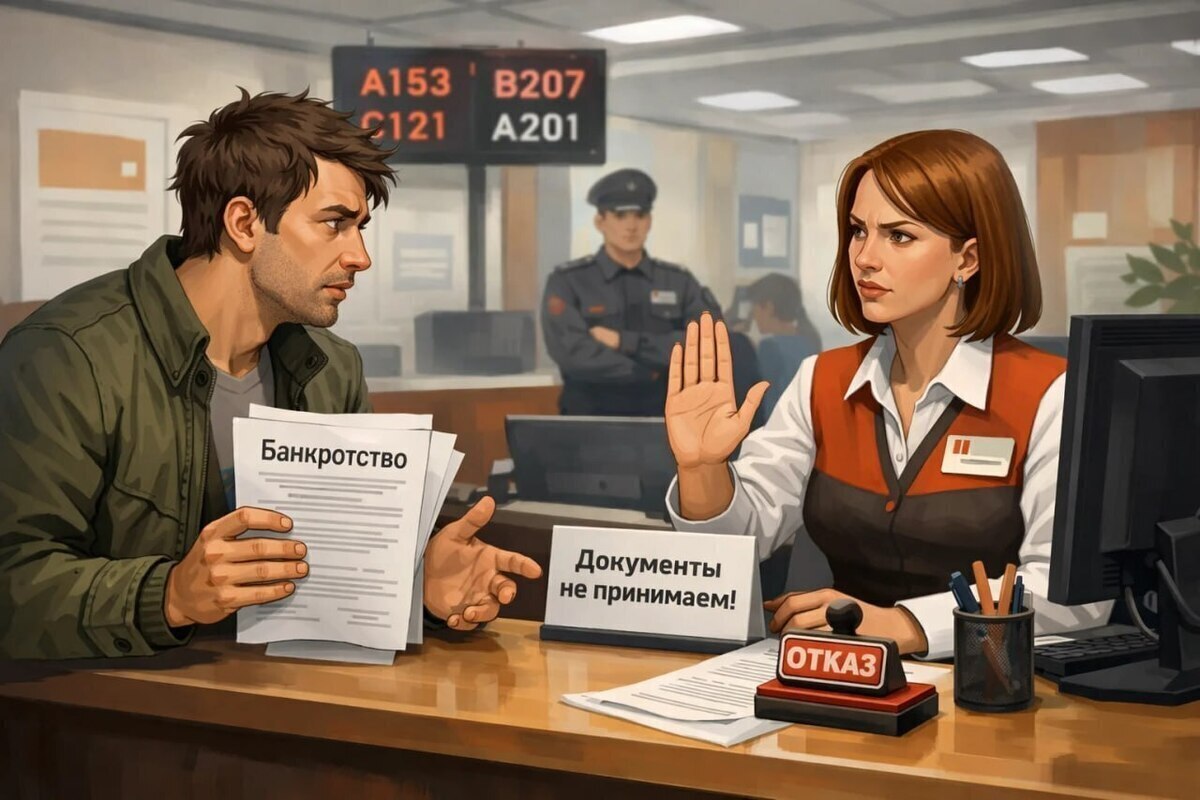 МФЦ отказал в приёме заявления, указав на несоответствие формы списка кредиторов и подачу документов не по месту регистрации.